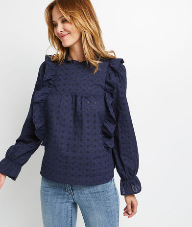 Privilégiez les hauts structurés, les épaulettes, les froufrous, les volants, et les imprimés, rayures sur le haut de votre corps.