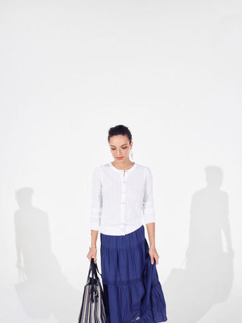 Les coupes midi et longues se porteront avec une tenue cintrée en haut avec une encolure dégagée.